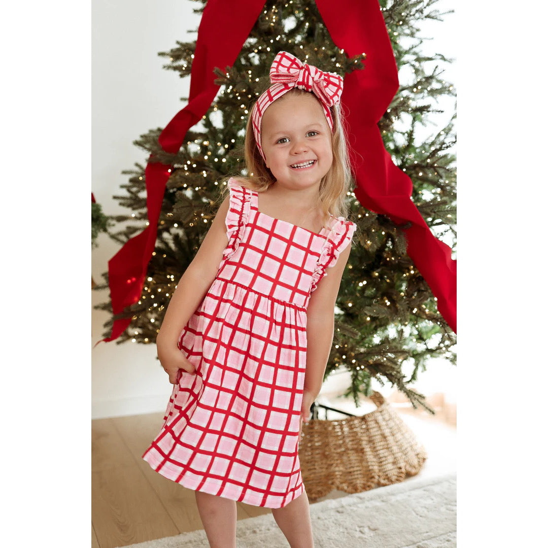 The Candy Check Frill Dress is the perfect blend of festive charm and breezy comfort. Made from 100% lightweight cotton, this sleeveless style features soft frill shoulder details and our red and pink check — made for sunny celebrations and Christmas twirls!