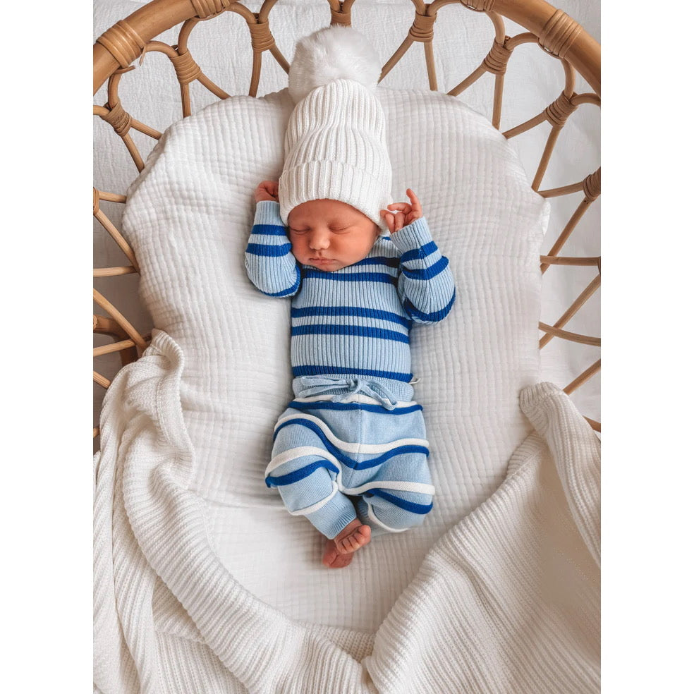 Our Alfie knit pants are super soft, cosy, and made from 100% breathable cotton — perfect for keeping little ones comfortable through every season. Designed with a drawstring and elastic waist, they provide a snug yet flexible fit for everyday wear.