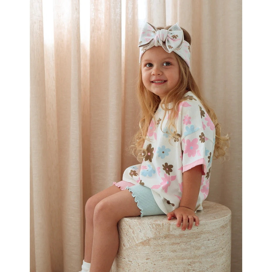 Our knit tees are soft, lightweight, and made from 100% breathable cotton, designed with a relaxed fit for everyday comfort. Featuring delicate frill sleeves and hem details, they’re a sweet and versatile staple for your little one’s wardrobe.