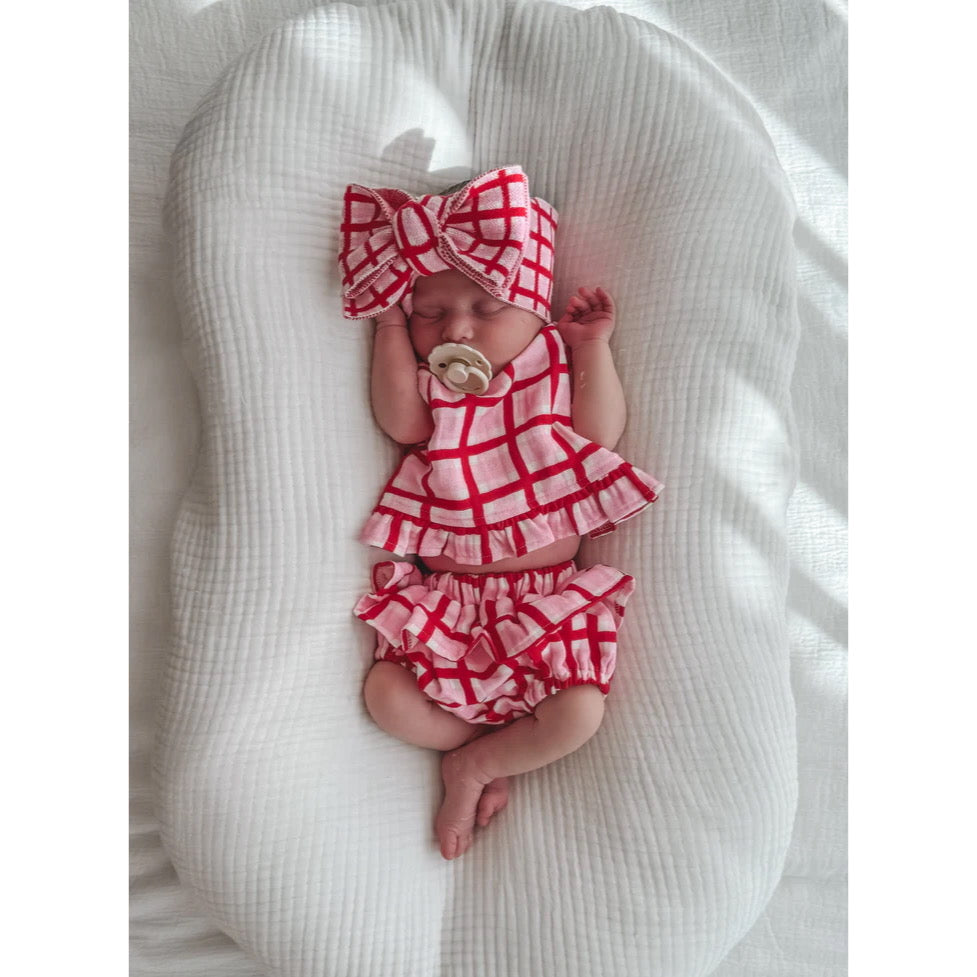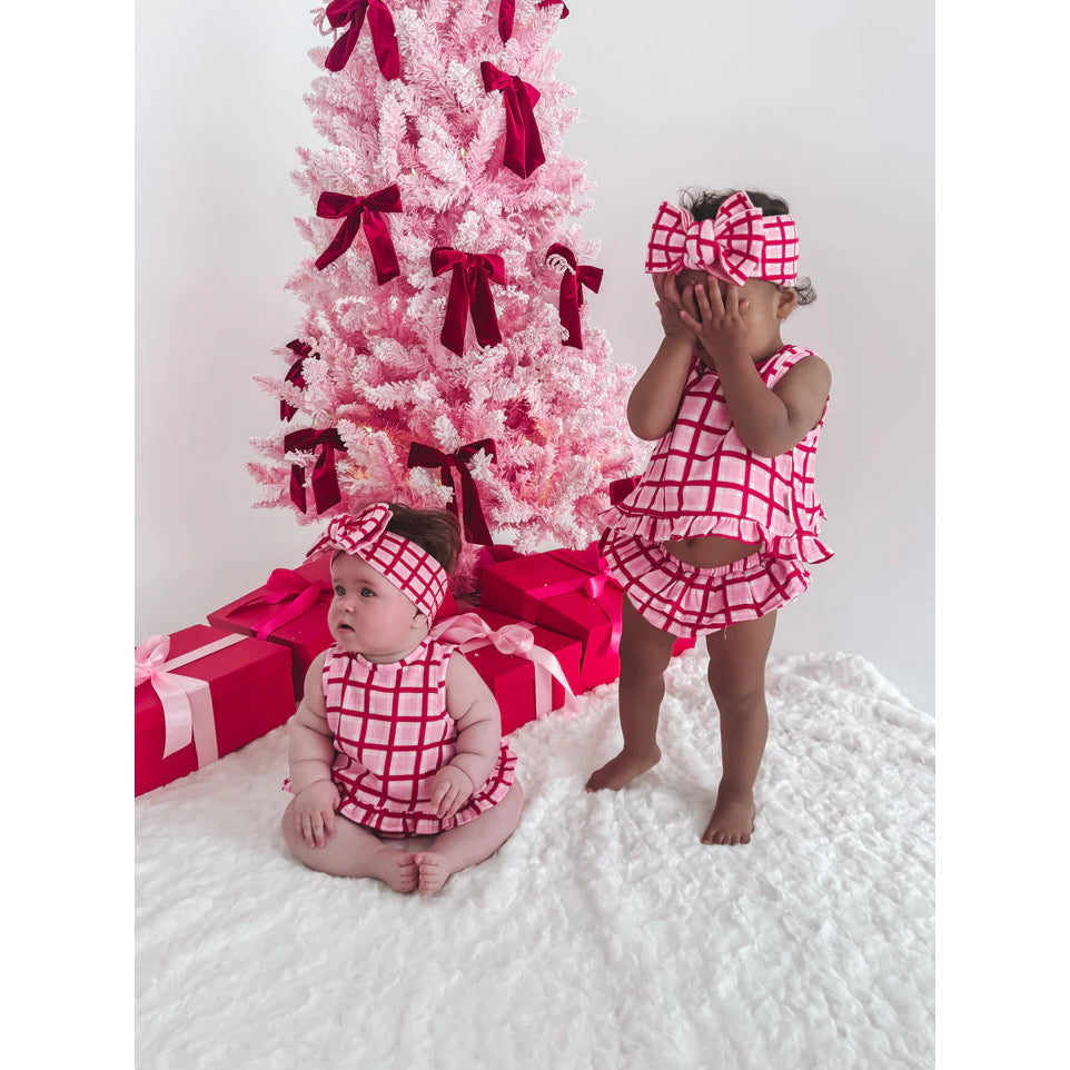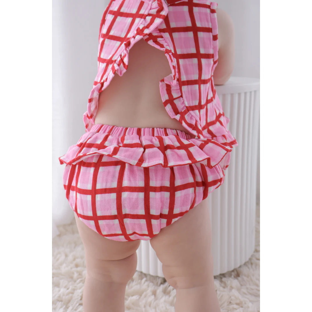Our Candy Check Frill Bloomers are made from 100% lightweight, breathable cotton — perfect for keeping little ones cool and comfy this festive season. Featuring a soft frill detail around the waist and our cheerful red and pink check, they’re as playful as they are practical.