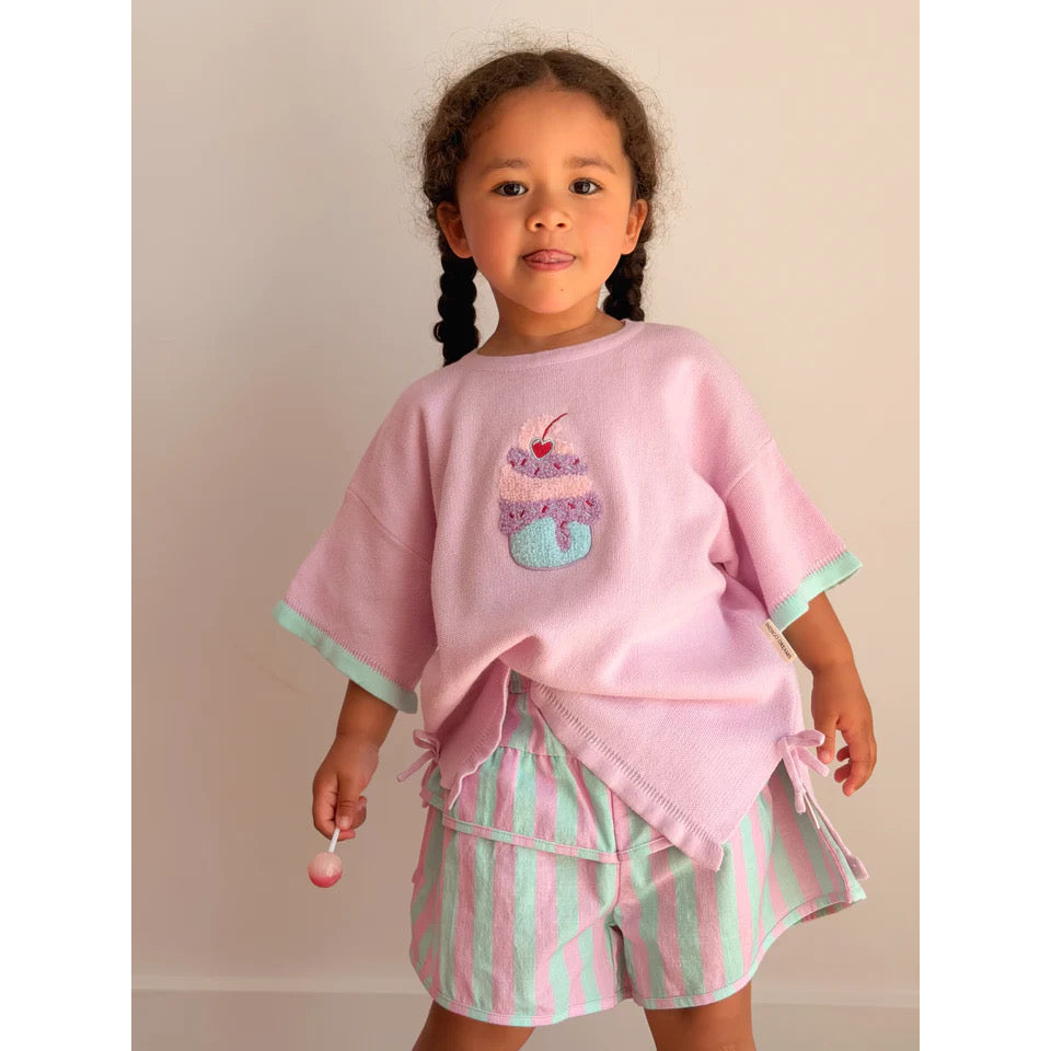 Designed with a relaxed, slouchy fit, they feature frill sleeve and hem details, side splits, and delicate bow detailing for a sweet, elevated finish. Pair them with our Sonnie shorts and headbands for a beautifully coordinated outfit. All pieces sold separately.