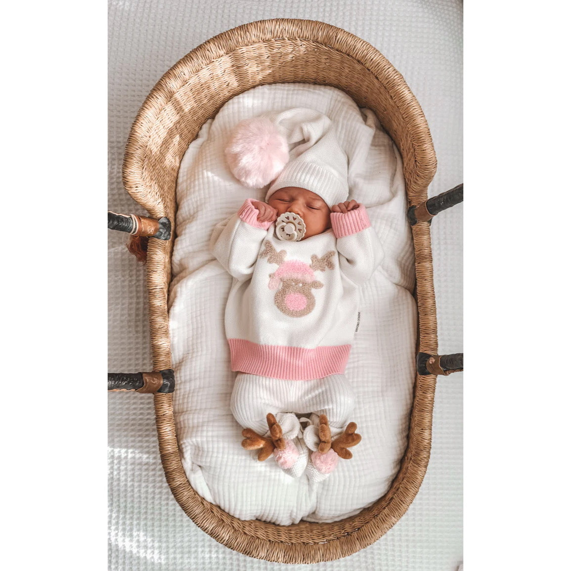 Our festive reindeer boucle embroidered knit jumpers are super soft, cosy and made from 100% breathable cotton.